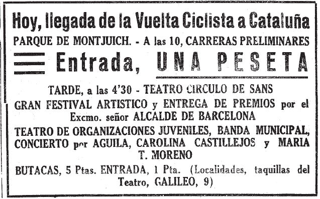 La guerra acabava oficialment l’1 d’abril de 1939, Catalunya havia caigut en mans del bàndol nacional poc abans: el 26 de gener s’ocupava Barcelona i el 10 de febrer les tropes franquistes arribaven a la frontera amb França. Vuit mesos més tard, la Volta a Catalunya es reprendria amb la seva dinovena edició. L’esport esdevenia un instrument importantíssim per a la propaganda del règim, així, la direcció de l’esport va passar a mans de la Falange Española Tradicionalista y de las JONS un cop acabada la guerra. Com recordava Rafael Vallbona en el llibre del centenari de la “Volta”, era una excel·lent forma propagandística per captar nous membres, i aprofitaven qualsevol acte esportiu per fer acte de presència, especialment en inauguracions. La “Volta” atreia per la seva antiguitat, era la pauta nacional del ciclisme esportiu durant les anteriors dècades i era una prioritat fer-la renéixer.