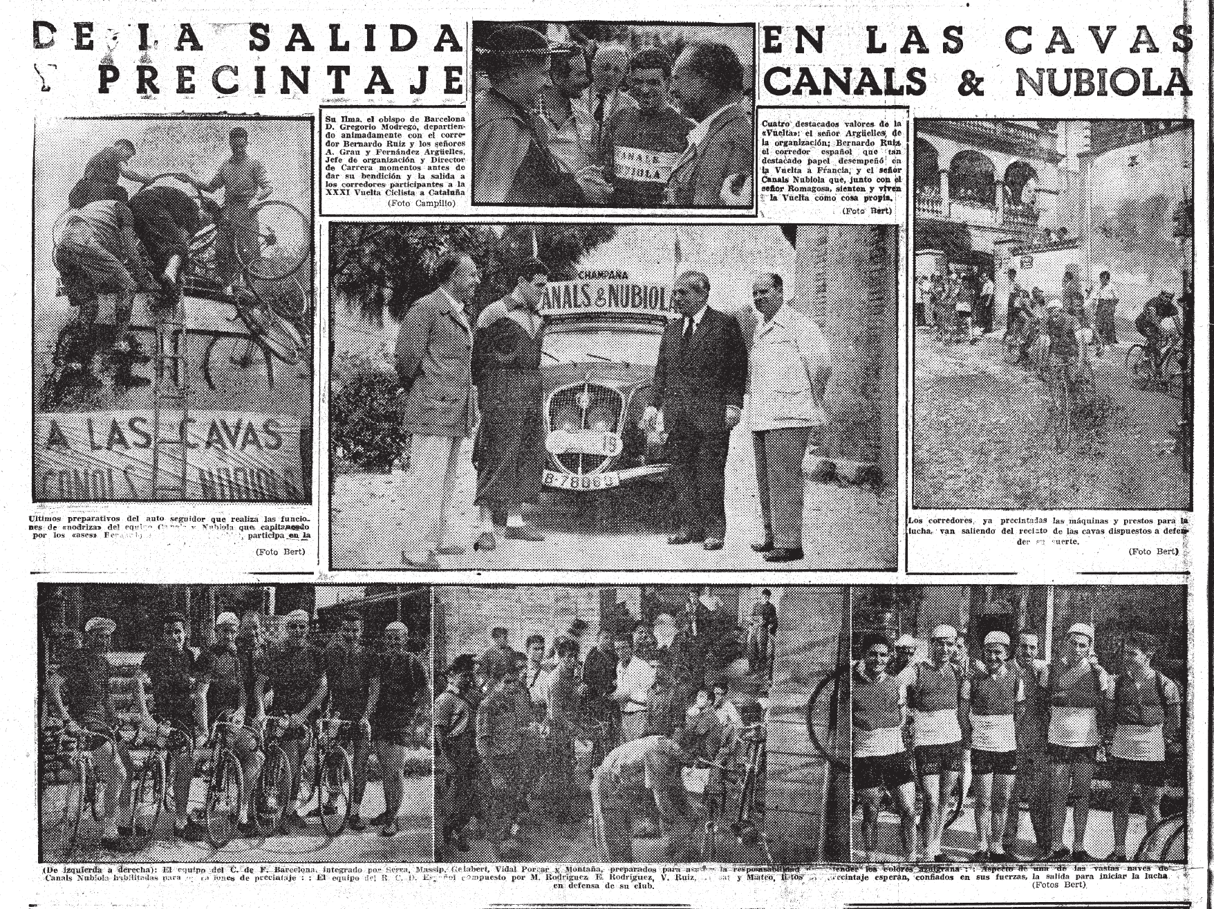La trenta-unena edició de la Volta a Catalunya va ampliar-se fins a dotze etapes i, per primer cop a la història, sortí d’una localitat que no era Barcelona. Les Caves Canals i Nubiola, a Sant Esteve de Sesrovires -a uns 30 quilòmetres de la capital-, va patrocinar la sortida fent-se gran, per un dia, un poble que aleshores comptava amb tres mil habitants, podent gaudir de tots els actes previs tals com el precintatge.