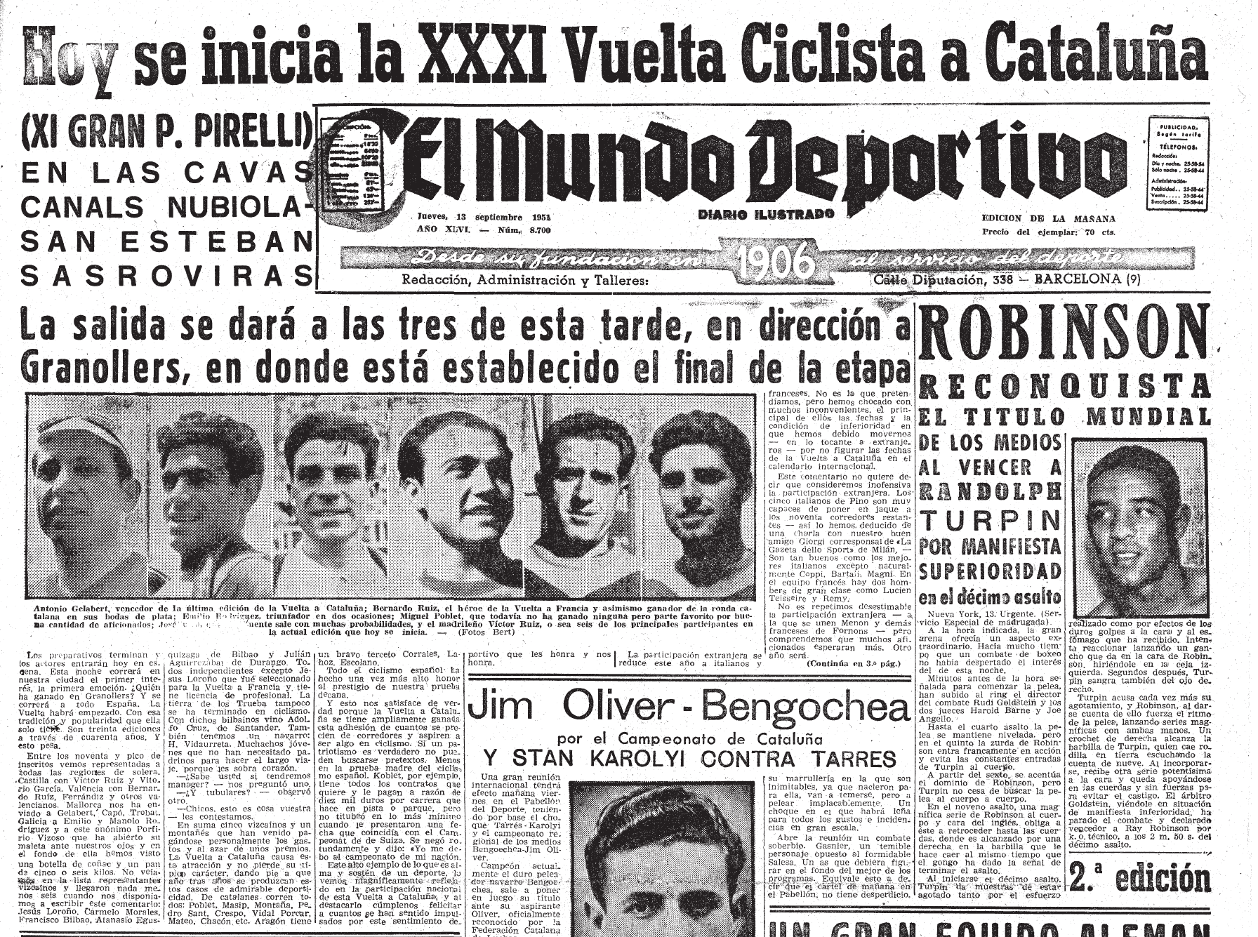 Les dotze voltes a Montjuïc -que en els darrers anys inauguraven la Volta- passaren a ser, aquest cop, la quarta etapa. El públic fou més nombrós que mai, doncs era un diumenge. La marxa fou ràpida -38 km/h de mitjana- i es resolgué en la part final amb una arrencada sensacional de Bernat Capó, que li valia per imposar-se sobre un grup que entrà en petits talls. Nova ocasió perduda per a Poblet, que creuà meta en un segon grup perdent gairebé un minut. Al de Montcada i Reixac li faltava equip, al seu costat, Bernardo Ruiz, era valedor per la muntanya i, però aquell any hi assistí fluix de forces per l’esgotament provocat pel seu calendari.