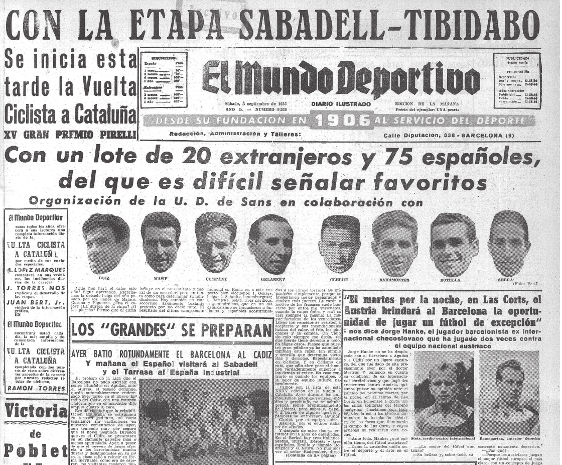 La sortida des de Sabadell fou espectacular i emotiva. S’homenatjà a Francisco Alomar, ciclista balear que, amb 27 anys, havia perdut la vida feia un mes en patir un accident quan tornava a Barcelona en bicicleta després de retirar-se a la Vuelta a Galicia. El balear tenia reservat el dorsal 3 d’aquesta Volta. També s’aprofità per recordar Pere Sant, ciclista sabadellenc mort al desembre de 1953. Es realitzà un minut de silenci, es resà un Parenostre i mossèn Borràs hi dedicà unes paraules. Seguidament, sonà l’himne espanyol, es deixaren anar uns coloms i l’Aero Club de Sabadell-Barcelona ho arrodoní tot amb un espectacle aeri. Sabadell mai havia viscut quelcom similar i va bolcar-se amb la sortida.