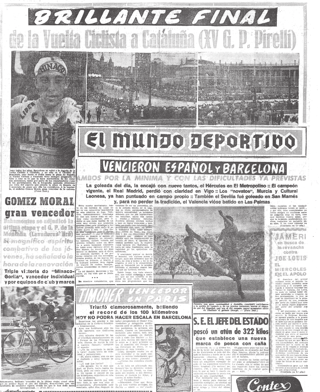L’andalús José Gómez del Moral guanyava la general de la Volta a Catalunya sense vèncer cap etapa. Amb 24 anys, sumava al seu palmarès la ronda catalana després de guanyar, aquella mateixa temporada, la Vuelta a Andalucía. La clau va estar en la seva regularitat i en el seu equip, liderat per un experimentat ex-corredor, Bernat Capó, que conduí el seu equip mallorquí cap a la victòria, arrodonint el que havia estat una setmana triomfal per al ciclisme balear amb el campionat del món de Timoner i la victòria del Minaco-Gorila a la Volta. L’etapa entre Valls i Vinarós havia estat la sentència. Bahamontes confessava haver-se vist amb forces per guanyar la Volta, però que aquella jornada ho va desbaratar tot: “no ens vam entendre; en veritat crec que no era jo a qui li corresponia donar caça”.