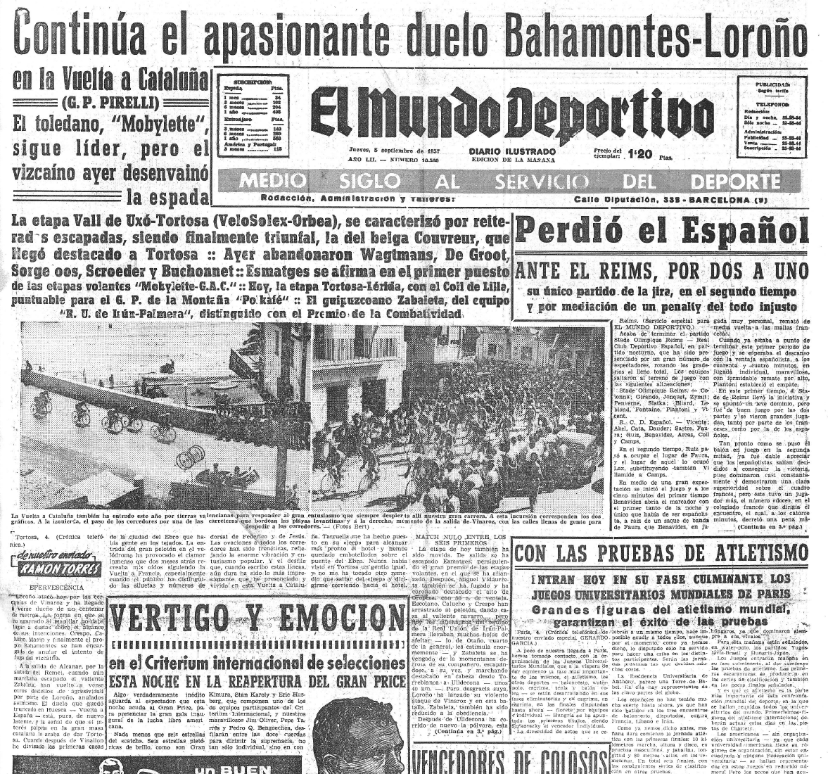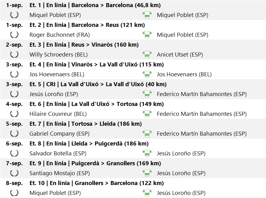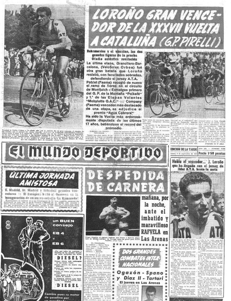 Jesús Loroño va guanyar la Volta a Catalunya arrodonint un any excepcional on s’havia mostrat com un dels grans asos espanyols. Una Volta on el “vencedor moral” havia estat Bahamontes… Què hauria passat d’haver-se neutralitzat el tram d’Oliana? I és que els noms dels vuit primers de la classificació general, precisament, coincidien amb els vuit que van salvar aquell infern. De ben segur que l’etapa reina hauria suposat un duel més interessant entre Loroño i el toledà. El biscaí, vencedor de la Vuelta a España d’aquell any, declarà: “és més difícil guanyar la Volta que la Vuelta…”. Va demanar a l’organització endur-se el mallot groc cap a Bilbao, doncs volia ensenyar-lo a la seva gent… i allà es va quedar: l’any següent el mallot de líder passaria a ser l’actual blanc-i-verd.