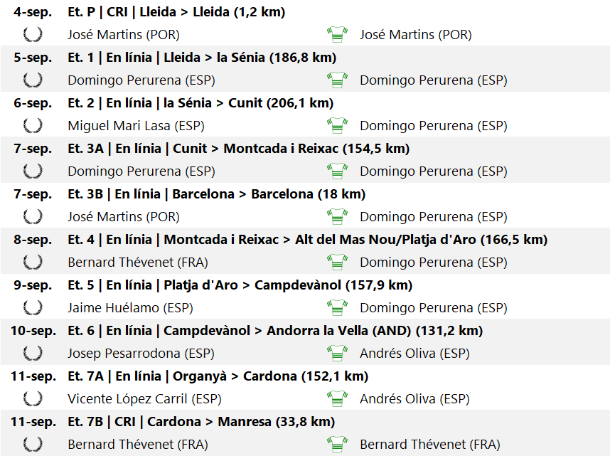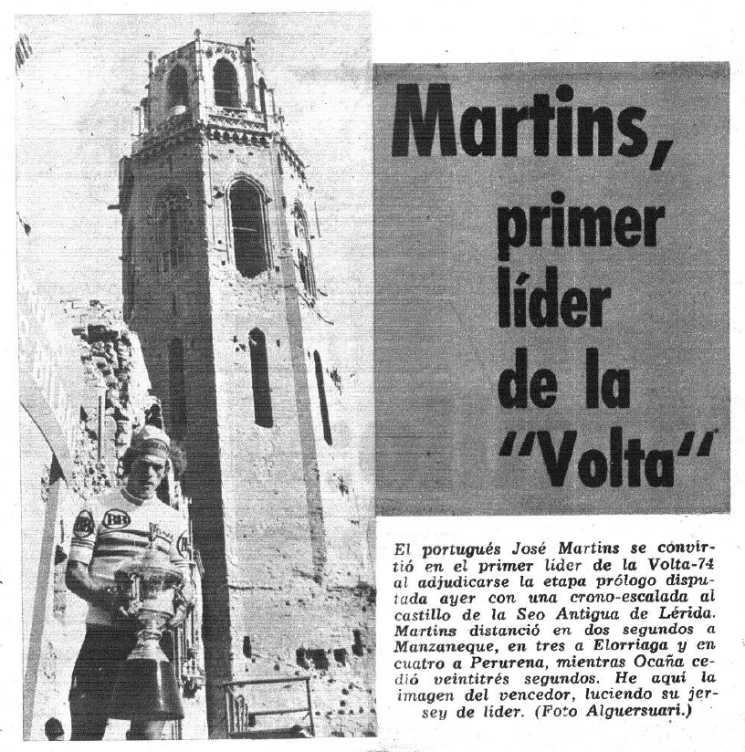 Donant-li un punt d’atracció, la Volta s’inicià amb un pròleg a Lleida de tan sols 1.170 metres, que venia a ser una mini-cronoescalada a la Seu Vella, ubicada en un turó i amb 75 metres de desnivell positiu, sortint des de la Paeria i pujant pel carrer dels Cavallers. José Martins va donar la sorpresa enduent-se la victòria. El portuguès, de 22 anys, era un autèntic desconegut i va treure dos segons a Manzaneque i quatre a Perurena. Òbviament les diferències van ser escasses, però defraudaren alguns temps com el d’Ocaña, que començava amb un desavantatge de 23 segons.
