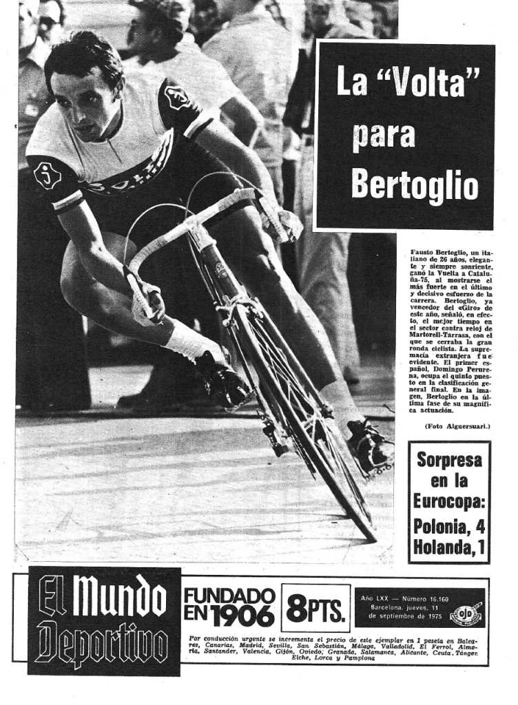 “És un error posar la contrarellotge l’últim dia, s’hauria vist més batalla…” eren les declaracions de Perurena a Manresa, en el penúltim dia de la prova. I és que la Volta havia quedat totalment condicionada a la contrarellotge final, fent que la cursa quedés mancada de batalla. El propi Bertoglio es declarava com el primer sorprès. L’italià ni tan sols s’havia deixat veure, però es va mantenir davant i va tenir un bon paper al Mas Nou, per després ser el més ràpid a la contrarellotge. Fausto Bertoglio tancava el seu millor any com a professional amb la victòria al Giro d’Itàlia i a la Volta.