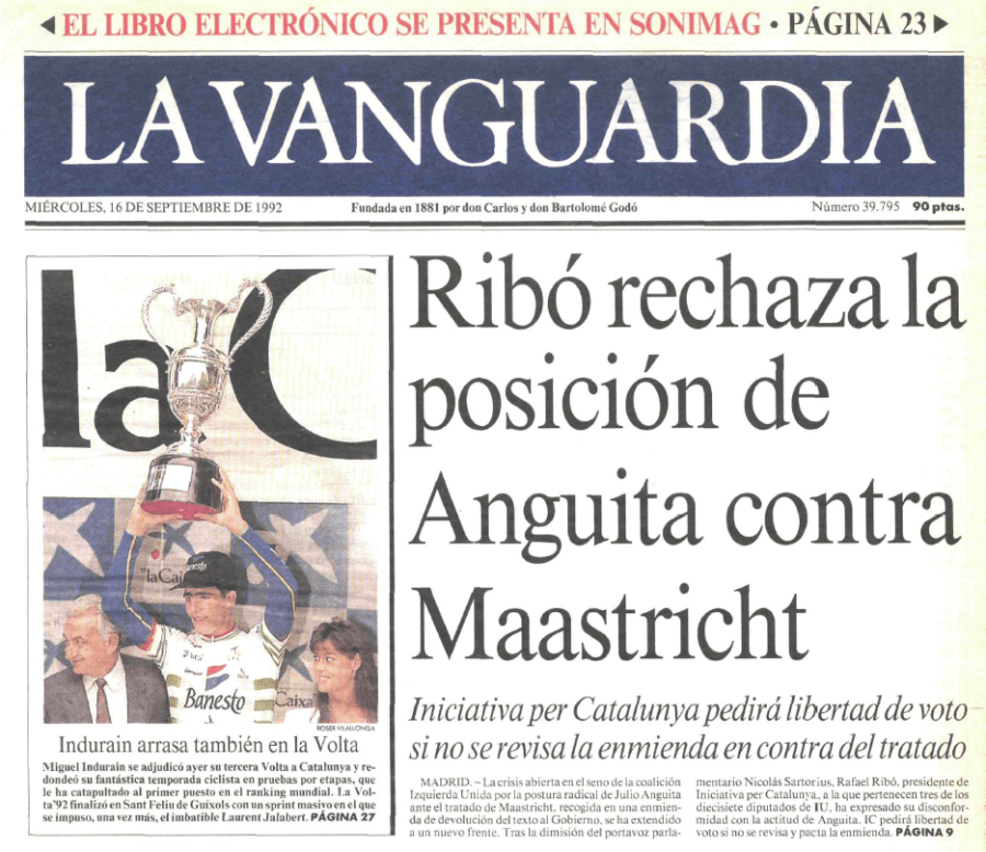 Miguel Indurain guanyava la seva tercera Volta a Catalunya, la segona consecutiva, esdevenint el segon corredor amb més victòries globals a la ronda catalana (Mariano Cañardo, 7): “Guanyar la Volta és el millor colofó per a una excel·lent temporada. Per mi significa una gran alegria triomfar en una cursa tan important i davant estrelles com Rominger, en un estat de forma similar al meu”. El navarrès guanyava aquell any el rànquing FICP (UCI), en una temporada on havia aconseguit el doblet Giro-Tour i la Volta com a cirereta final. La victòria a la ronda catalana servia també al Banesto per arrabassar, per pocs punts, el primer lloc de la classificació per equips al Panasonic.