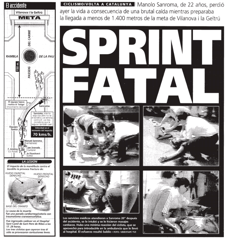 Jan Svorada: “Va tocar el meu manillar i allà es va acabar tot. Imprudència? És potser l’esprint per a gent prudent? El que passa és que amb el temps aprens a quan has de frenar. I Sanroma encara no ho tenia clar”. Àngel Edo: “Nosaltres sempre ens la juguem, molt més que els escaladors. Però mai penses en què res com això pugui passar. Saps que t’arrisques, que pots trencar-te la clavícula o acabar ple de cremades d’asfalt. Però mai et penses que et pugui tocar. Jo anava just a roda de Cipollini i vaig escoltar un cop molt fort per darrere”. Mario Cipollini: “En moments com aquest de res serveixen les paraules. Què podem dir? Només resar per ell. En els esprints s’arrisca, però mai pensem en què t’hi pots deixar la vida. Jo mateix vaig patir un accident molt greu a Salamanca… però vaig tenir sort”. Jo Planckaert: “Vaig tenir la mort molt a prop. He tingut molta sort i només m’he fet un esquinç al canell. Però avui em fa més mal l’ànima que la mà”.