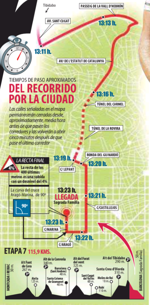 Barcelona tancava la Volta amb l’última etapa, i amb un final inèdit als peus de la Sagrada Família. La jornada va ser molt competida, indicadora en fou la mitjana de més de 42 km/h. S’inicià amb una escapada formada per Lara, Flecha, Parra i Valverde, però la batalla important es desencadenà al Tibidabo. Allà Heras i el seu US Postal controlaren els intents d’atac d’homes com Pérez o Garmendia, fent que el grup acabés seleccionant-se amb 17 homes capdavanters que es jugaren la victòria d’etapa. Dimitri Fofonov s’enduia l’esprint barceloní on tothom esperava veure triomfar el mallot irisat. Però Freire havia quedat despenjat a tan sols un quilòmetre de coronar el Tibidabo.