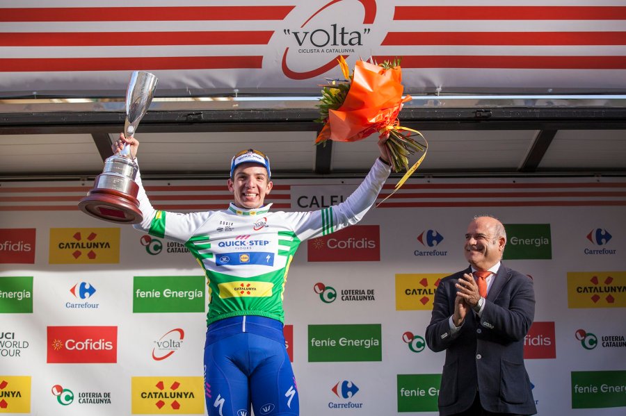 Seguint la tònica dels últims anys, Calella donava el tret de sortida de la Volta amb una primera etapa que, aquest cop, presentava un sol port: el de Collsacreu a poc més d’una desena de quilòmetres de l’arribada. El grup afrontà compacte el port, havent neutralitzat una escapada inicial de sis corredors. Movistar, Cofidis i BORA-Hansgrohe es rellevaren en el treball del grup, per acabar-se resolent l’etapa a l’esprint. Álvaro Hodeg s’imposava a Sam Bennett i Jay McCarthy, tots dos del BORA. El jove colombià, de 21 anys, sabia que Collsacreu era la prova de foc, però no va poder aguantar el ritme amb els millors. Tot i això, la fe que el seu equip tenia depositada en ell, el van fer tornar a enllaçar al descens. Jungels, Narváez i Morkov van ser els homes del Quick-Step que van portar a Hodeg a la victòria. Era la seva primera a l’UCI World Tour i la segona com a professional, tot just tres dies després de proclamar-se vencedor a la Handzame Classic.