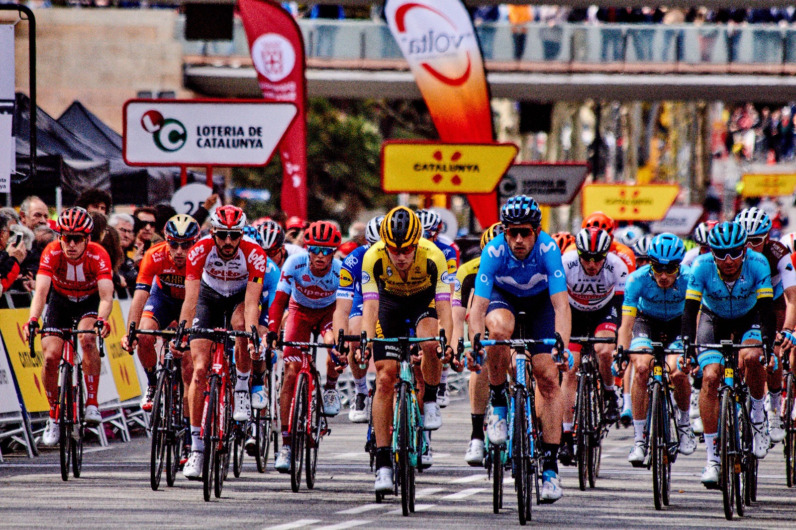 Peloton first pass through finish line